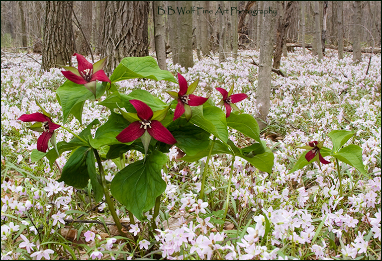 Trillium are a springtime favorite wildflower. The Nodding Trillium here was found in the Smoky Mountains National Park and captured by lying on my belly on the wet forest floor. But worth it! |