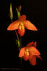 The brilliant red-orange of these Paphiopedilum is breathtaking. |
