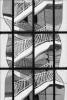 This image captures the matrix reflection of an exterior stairway through the mirrored glass wall of an opposing building, providing the abstract and graphic quality.
